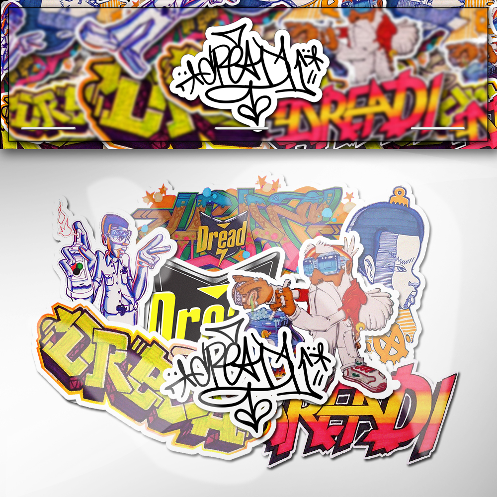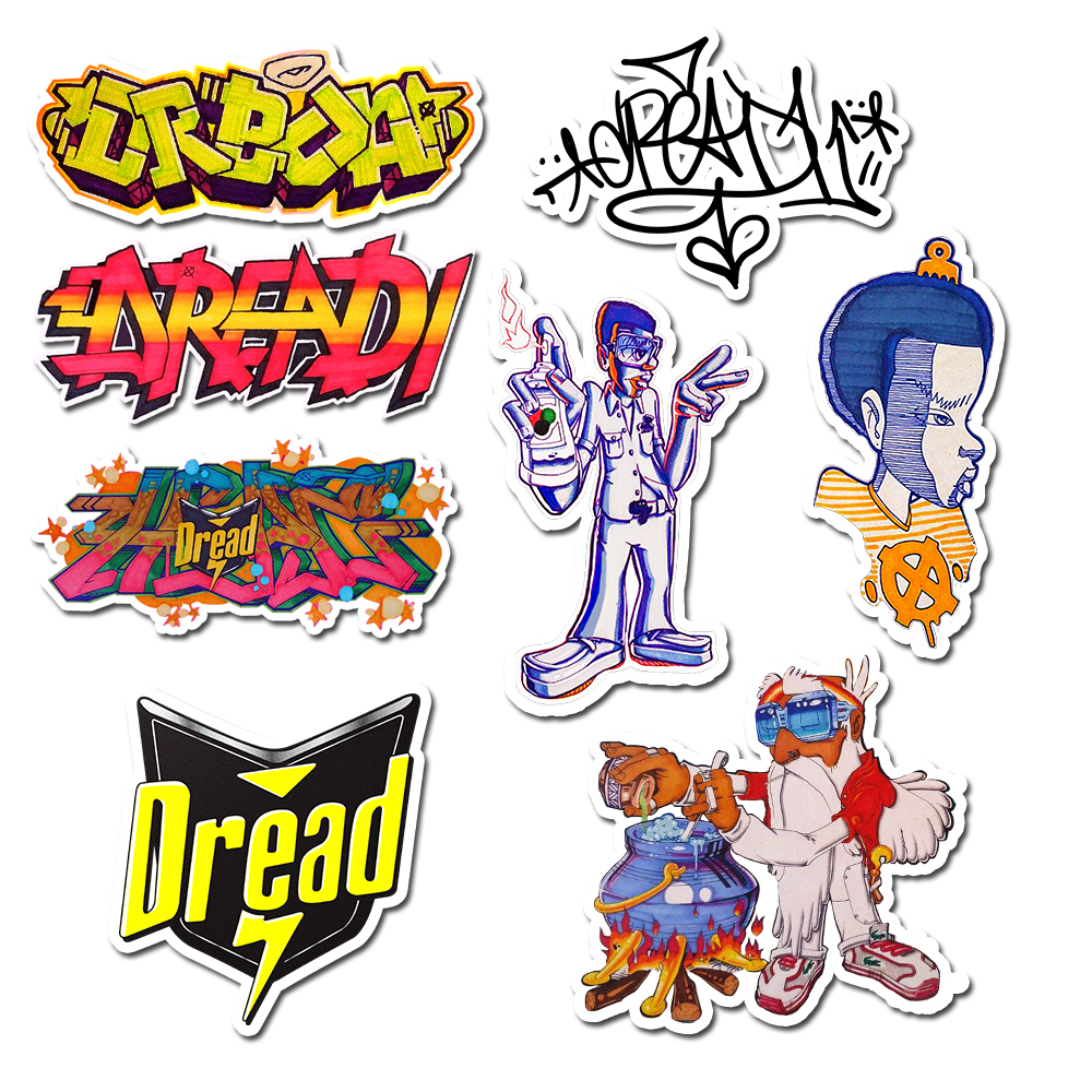 Stickers designed by legendary South African graffiti writer Themba Dreadr